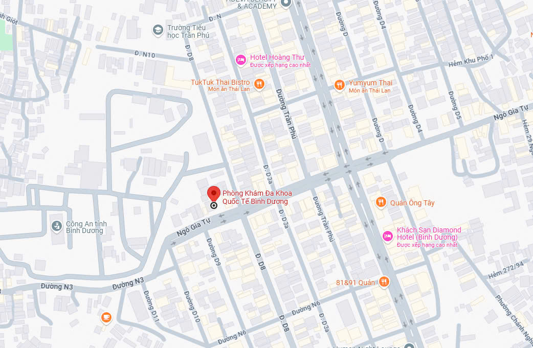 Phòng khám đa khoa quốc tế Bình Dương, địa chỉ: 214 Ngô Gia Tự, P. Thủ Dầu Một, TP.Hồ Chí Minh (trước sát nhập là Phường Chánh Nghĩa, TP.Thủ Dầu Một, Bình Dương). Hotline/Zalo: 0368.582.396 Phòng khám chuyên thăm khám và điều trị các hạng mục bệnh: Nam khoa, Phụ khoa, Bệnh xã hội, đình chỉ thai. Đôi ngũ y bác sĩ có trình độ chuyên môn giỏi, nhiều năm kinh nghiệm trong nghề. Cơ sở vật chất khang trang, tiện nghi. Phương pháp điều trị hiện đại, có tính cập nhật mới. Chi phí thăm khám và điều trị bệnh được niêm yết theo bảng giá của Bộ Y Tế.