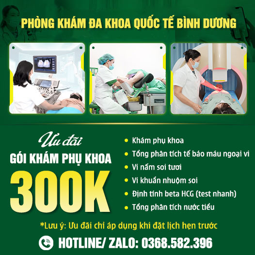 Nhằm giúp chị em chủ động hơn trong việc bảo vệ sức khỏe sinh sản, Phòng khám Đa khoa Quốc tế Bình Dương triển khai gói khám phụ khoa chỉ với 300.000 đồng, phù hợp cho mọi đối tượng, đặc biệt là những người bận rộn hoặc chưa từng khám phụ khoa trước đây.